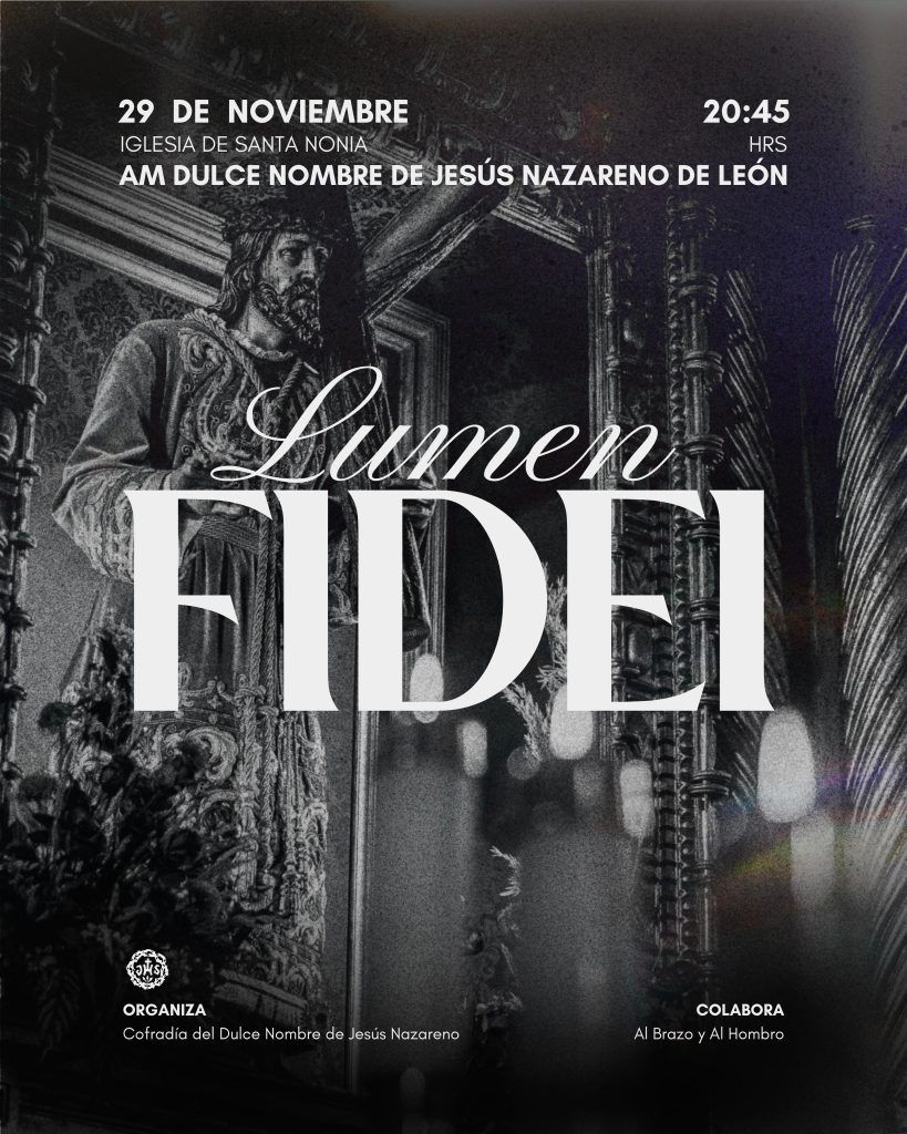La Agrupación Musical de la Cofradía del Dulce Nombre de Jesús Nazareno ofrecerá el próximo 29 de noviembre, a las 20:45 horas, un concierto muy especial bajo el título “Lumen Fidei”, que tendrá lugar en la Capilla de Santa Nonia .