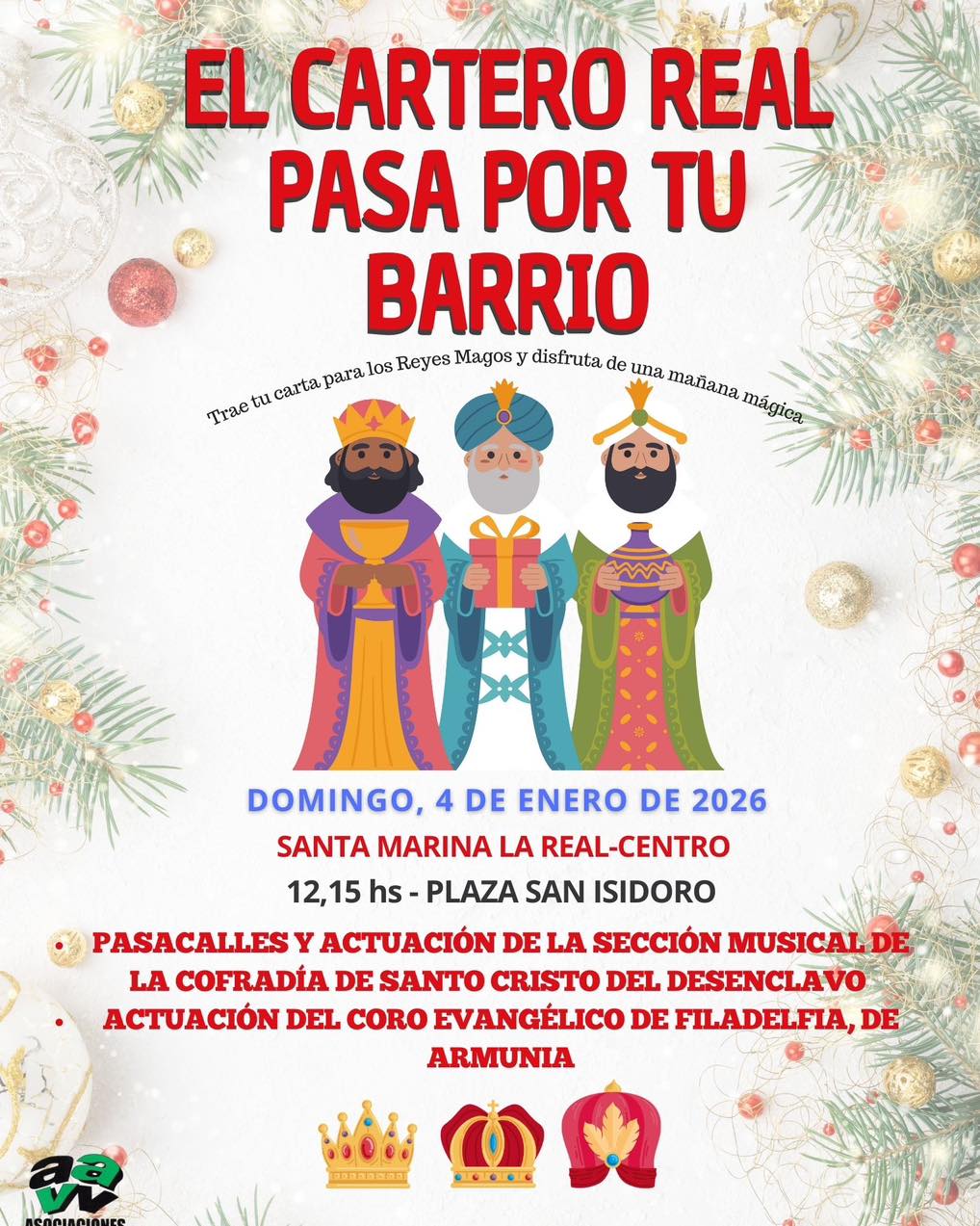 La magia de los Reyes Magos volverá a llenar el barrio de Santa Marina la Real este domingo, 4 de enero, con la tradicional visita del Cartero Real, una cita ya consolidada en el calendario navideño de la zona.