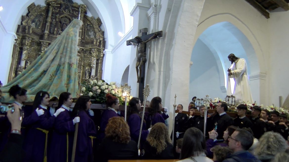 La Procesión del Encuentro de Sahagún no ha podido salir a las calles debido a la amenaza de lluvia. Sin embargo, la Cofradía de Jesús Nazareno y Patrocinio de San José ha realizado un acto en el interior de la iglesia de San Lorenzo.