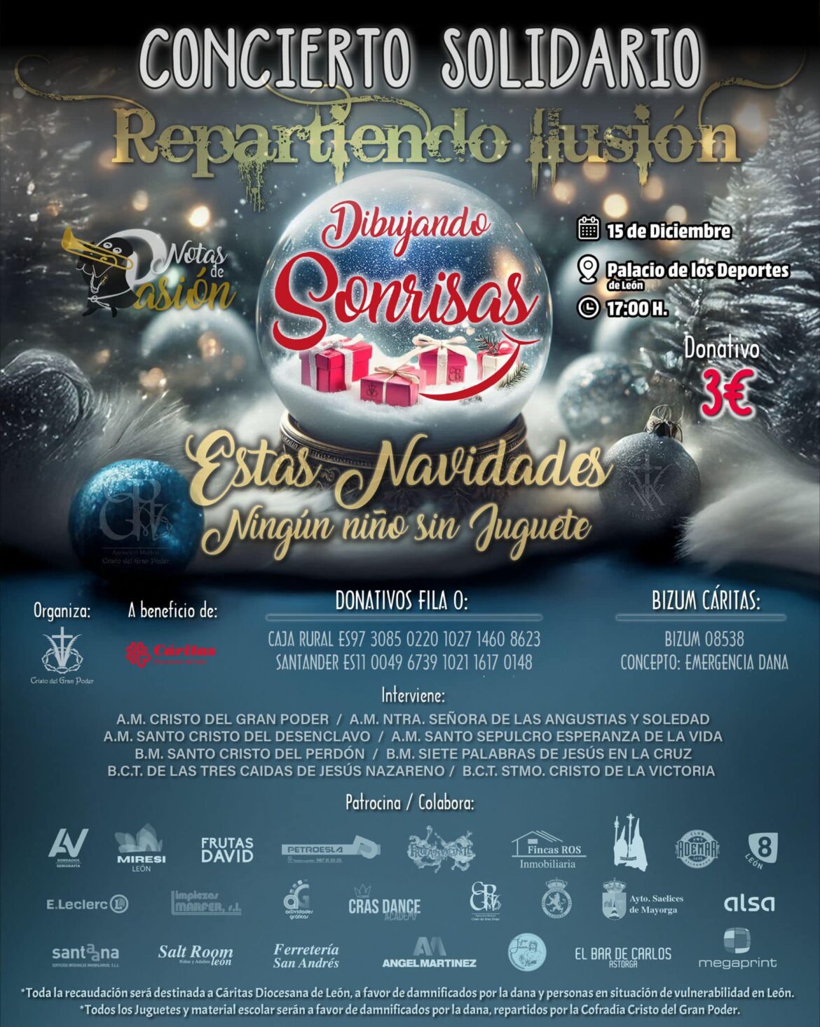 El concierto, que comenzará a las 17:00 horas, será el cierre de una campaña solidaria que ha movilizado a numerosas personas y entidades de la ciudad. Las entradas, con un precio simbólico de 3€, podrán adquirirse el mismo día del evento desde las 16:00 horas en el Palacio de los Deportes, donde también se recibirán donaciones de juguetes nuevos. Todos los fondos recaudados serán destinados a Cáritas Diocesana de León, encargada de distribuir los recursos entre las comunidades más afectadas.