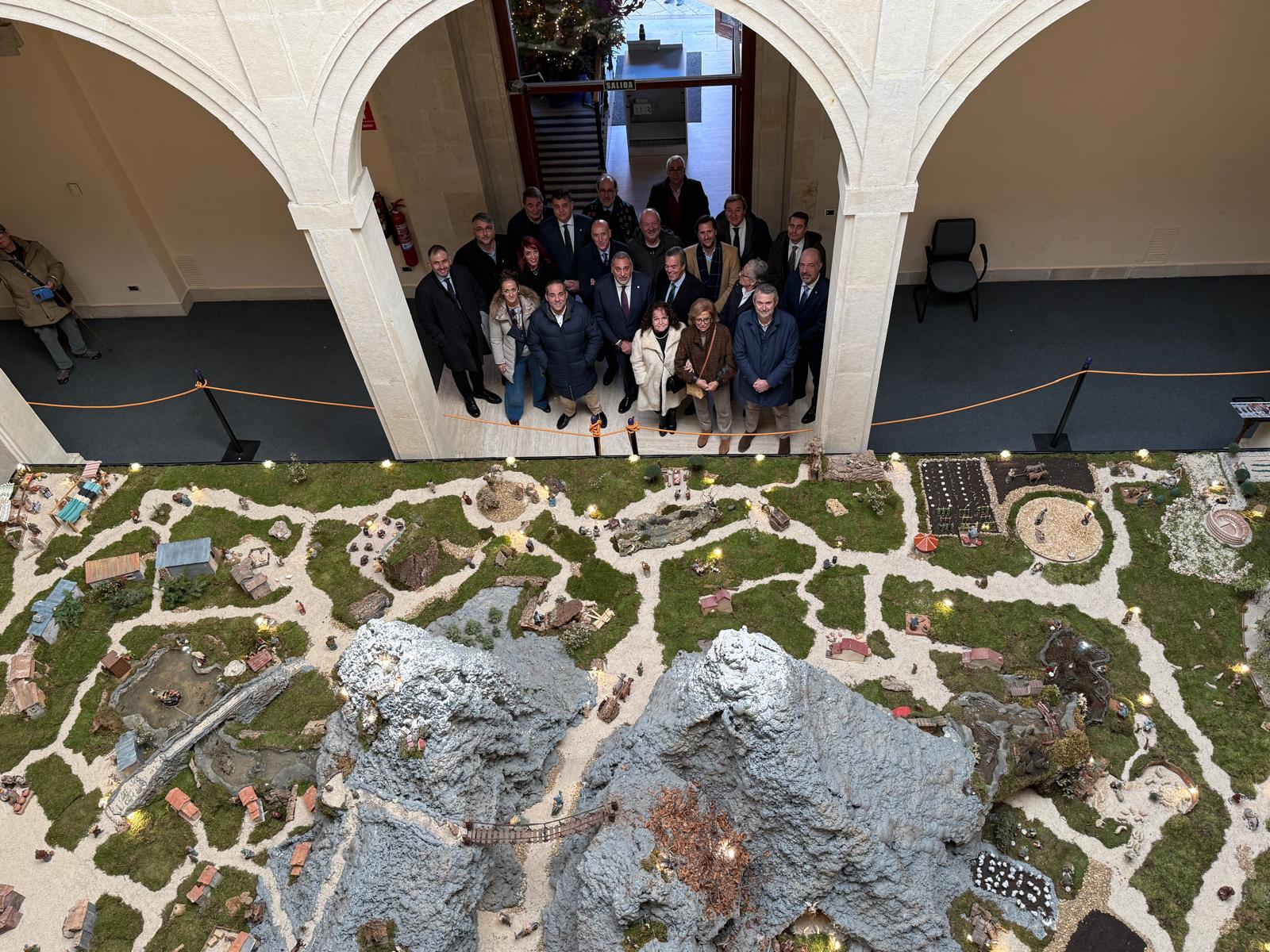 Instalado en la planta baja del emblemático edificio —cedido para su uso por Unicaja—, el Belén ocupa más de 65 metros cuadrados y reúne más de 300 figuras, muchas de ellas mecanizadas. Las piezas proceden, en su mayoría, de Jorge López-Arenas, Jesús López-Arenas y la familia de Eduardo de Paz, además de una donación realizada por Coral Muñoz González. El montaje ha sido ejecutado por Jorge López Arenas, José Ángel Arias y José Luis de Paz.