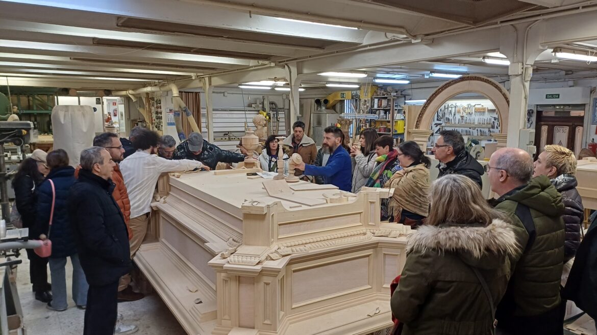 Durante el pasado fin de semana, la Cofradía Santo Cristo del Desenclavo realizó un viaje cultural con el objetivo de supervisar el estado de ejecución de su nuevo trono para las imágenes marianas. La delegación, compuesta por miembros de la Junta de Seises y hermanos de la cofradía, visitó los reconocidos talleres de arte religioso «Artemartínez», ubicados en la localidad de Horche, Guadalajara.