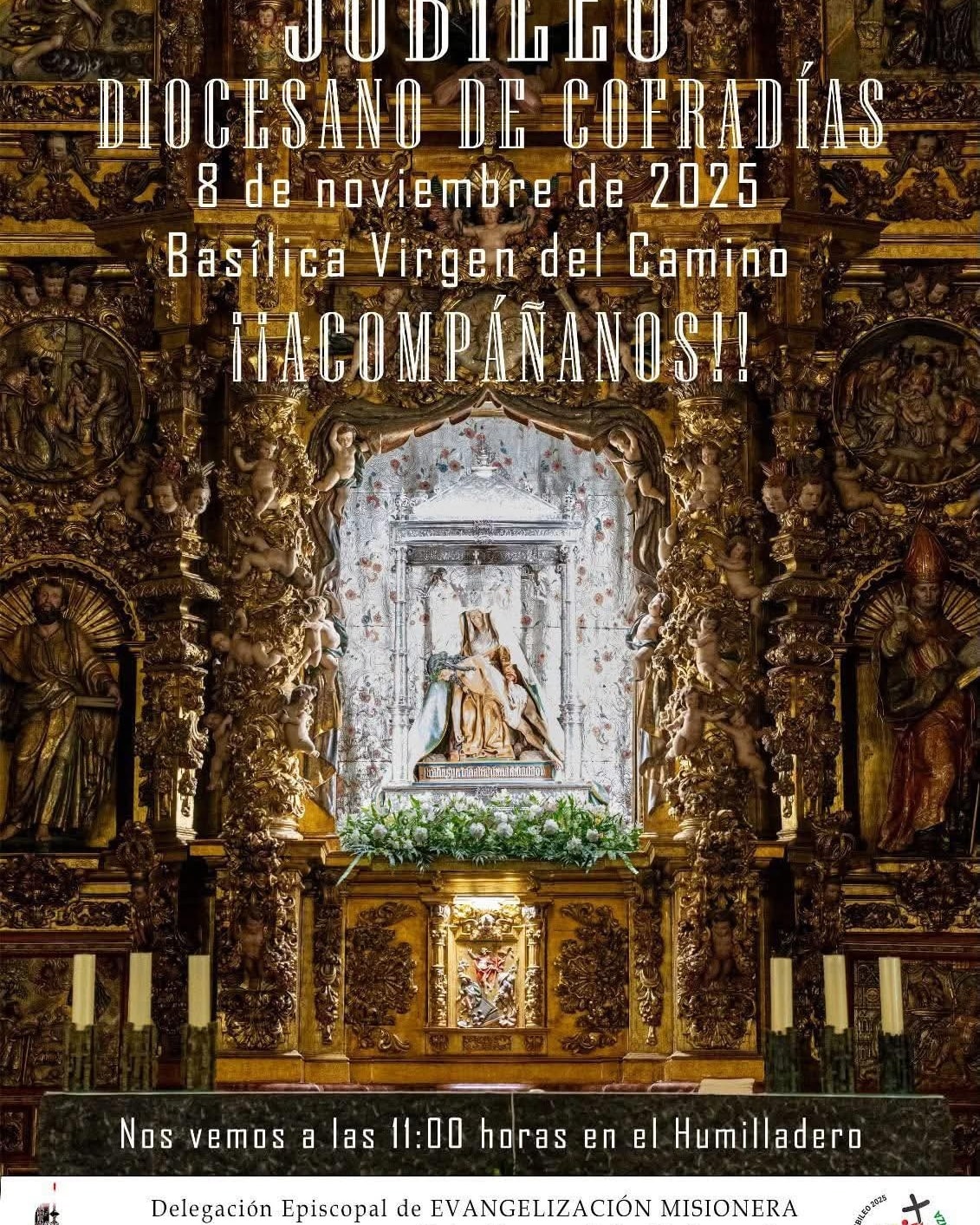 El área de Cofradías y Religiosidad Popular de la Diócesis de León invita a todas las cofradías de la provincia a participar en el Jubileo Diocesano de Cofradías, que será presidido por el obispo D. Luis Ángel de las Heras Berzal, CMF, el próximo 8 de noviembre de 2025 en la Basílica de la Virgen del Camino.