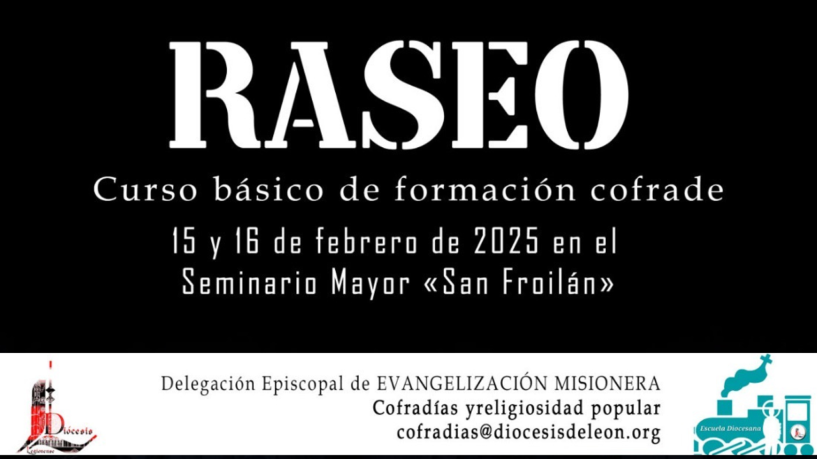 La Diócesis de León, a través de su área de Cofradías y Religiosidad Popular y de la Escuela Diocesana «Beato Antero Mateo», ha convocado una nueva edición del curso «Raseo. Curso básico de formación cofrade», dirigido a profundizar en los aspectos fundamentales de la fe cristiana y la vida cofrade. Este programa formativo, que combina sesiones presenciales y trabajo personal, se desarrollará durante los días 15 y 16 de febrero en el Seminario «San Froilán», ubicado en la plaza de Regla, 8.