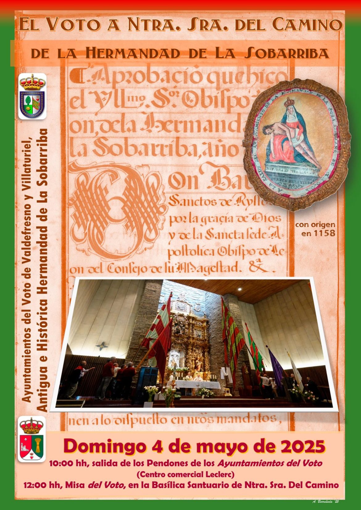 La histórica Hermandad de la Sobarriba celebrará este domingo 4 de mayo, coincidiendo con el tercer domingo de Pascua, la tradicional renovación del Voto a Nuestra Señora del Camino, un acto cuyos orígenes se remontan al año 1158.