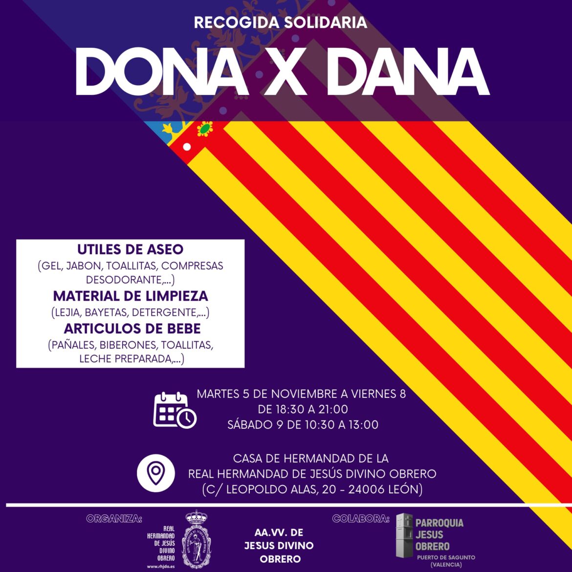 La Real Hermandad de Jesús Divino Obrero y la Asociación de Vecinos de Jesús Divino Obrero han puesto en marcha una campaña de recogida solidaria de productos de primera necesidad destinados a las personas afectadas por la reciente DANA (Depresión Aislada en Niveles Altos) que ha impactado en la Comunidad Valenciana.