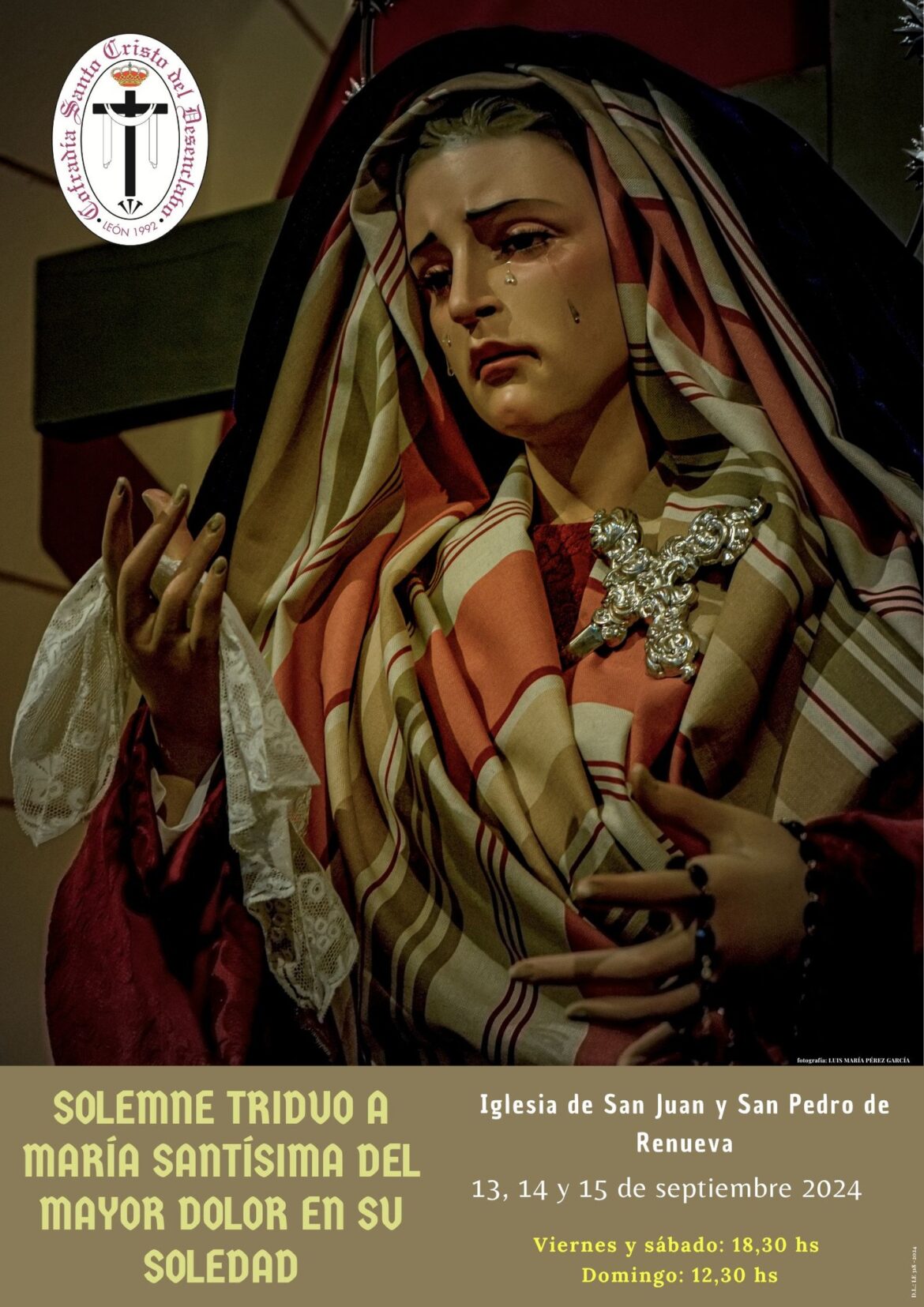 Este fin de semana, la Cofradía Santo Cristo del Desenclavo celebrará el Solemne Triduo en honor a María Santísima del Mayor Dolor en su Soledad, un acto de profunda devoción que tendrá lugar en la Iglesia Parroquial de San Juan y San Pedro de Renueva.